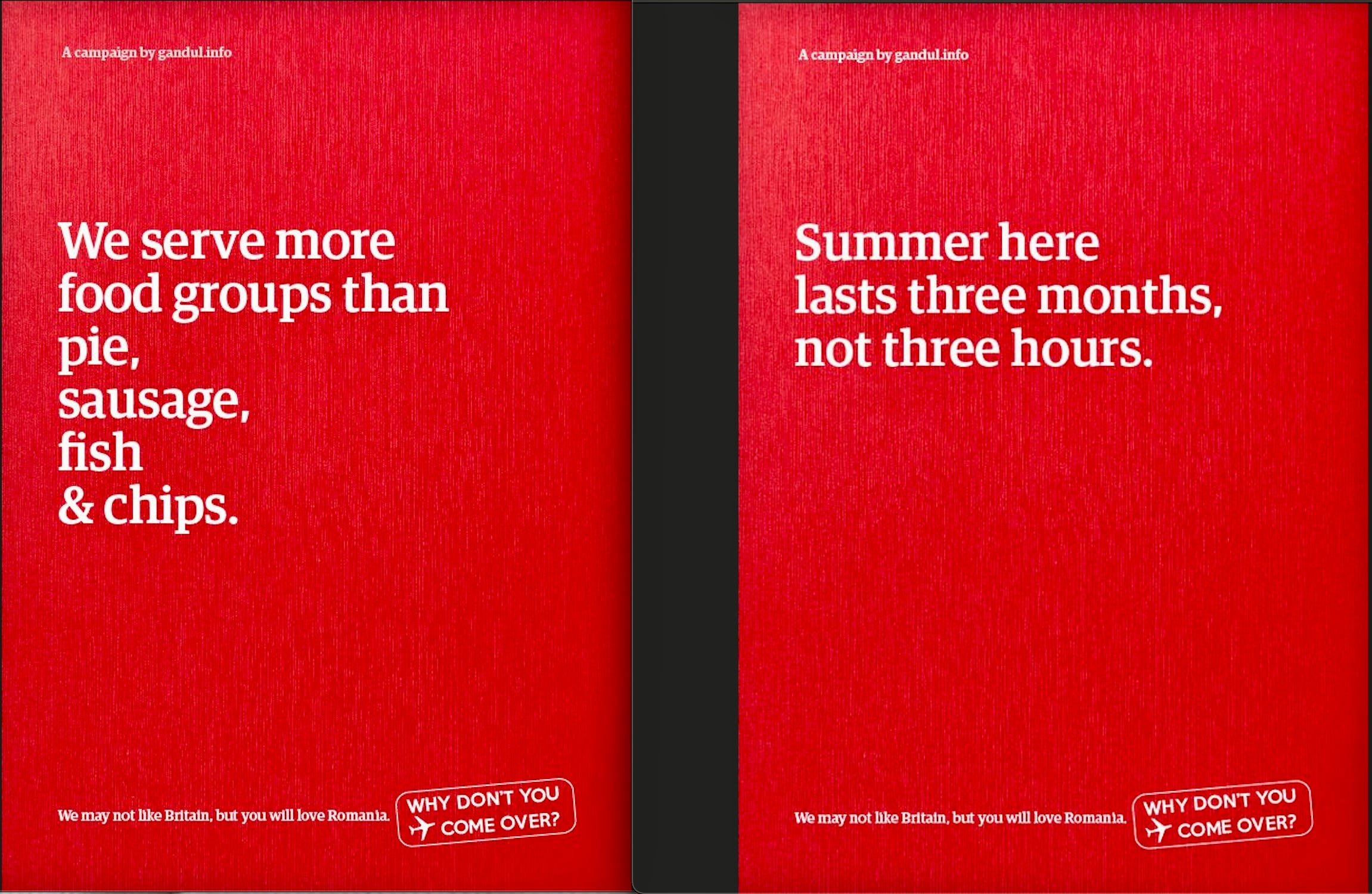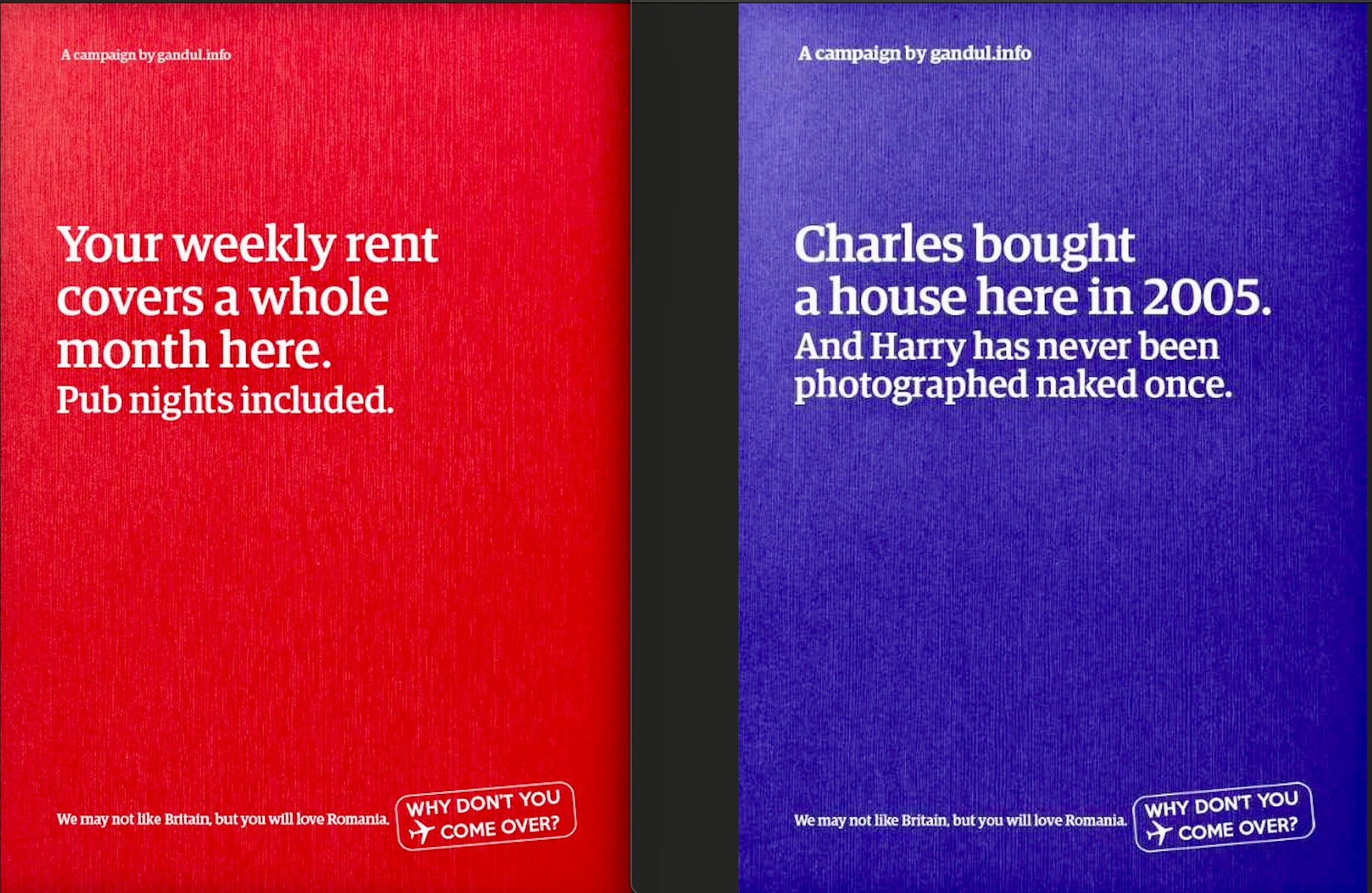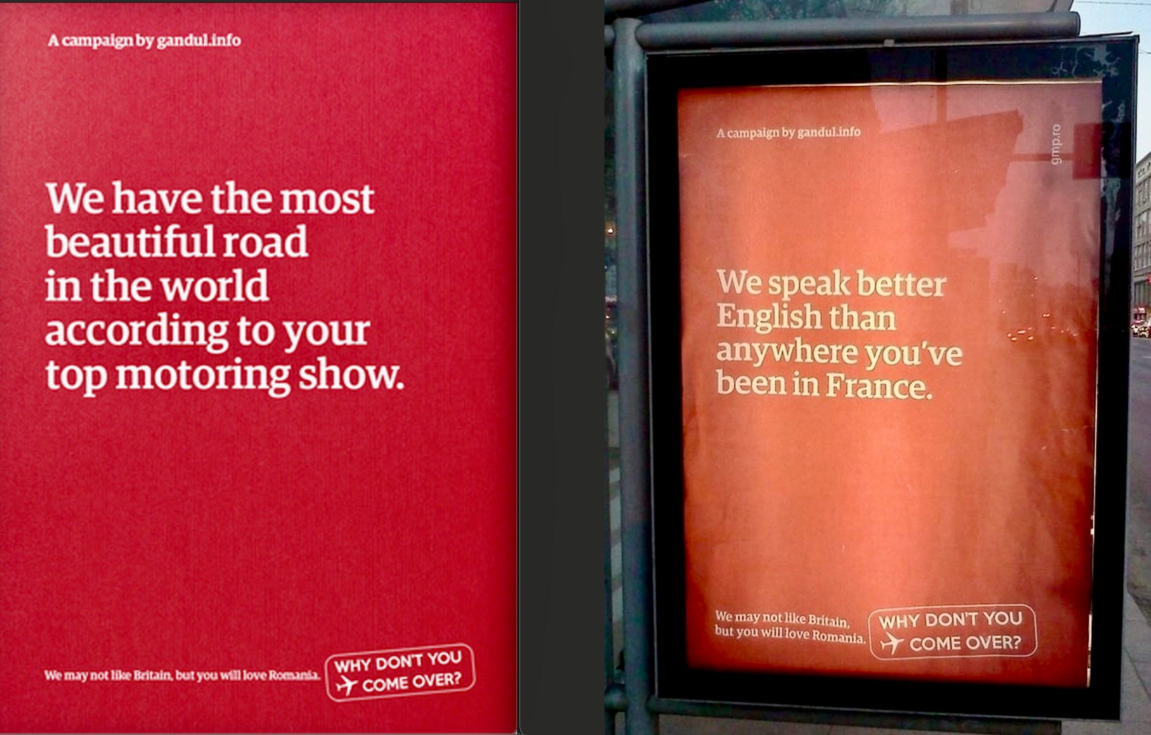 Mas o Gândul, um jornal diário romeno, viu uma oportunidade onde outros só viam indignação. Eles lançaram uma campanha com o slogan “Podemos não gostar da Grã-Bretanha, mas você vai adorar a Romênia”. Os anúncios foram veiculados no Facebook, só para os gestores de tráfego ficarem tranquilos.