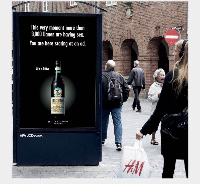 “Neste exato momento, mais de 8 mil dinamarqueses estão transando. E você aqui vendo um anúncio. A vida é amarga”.