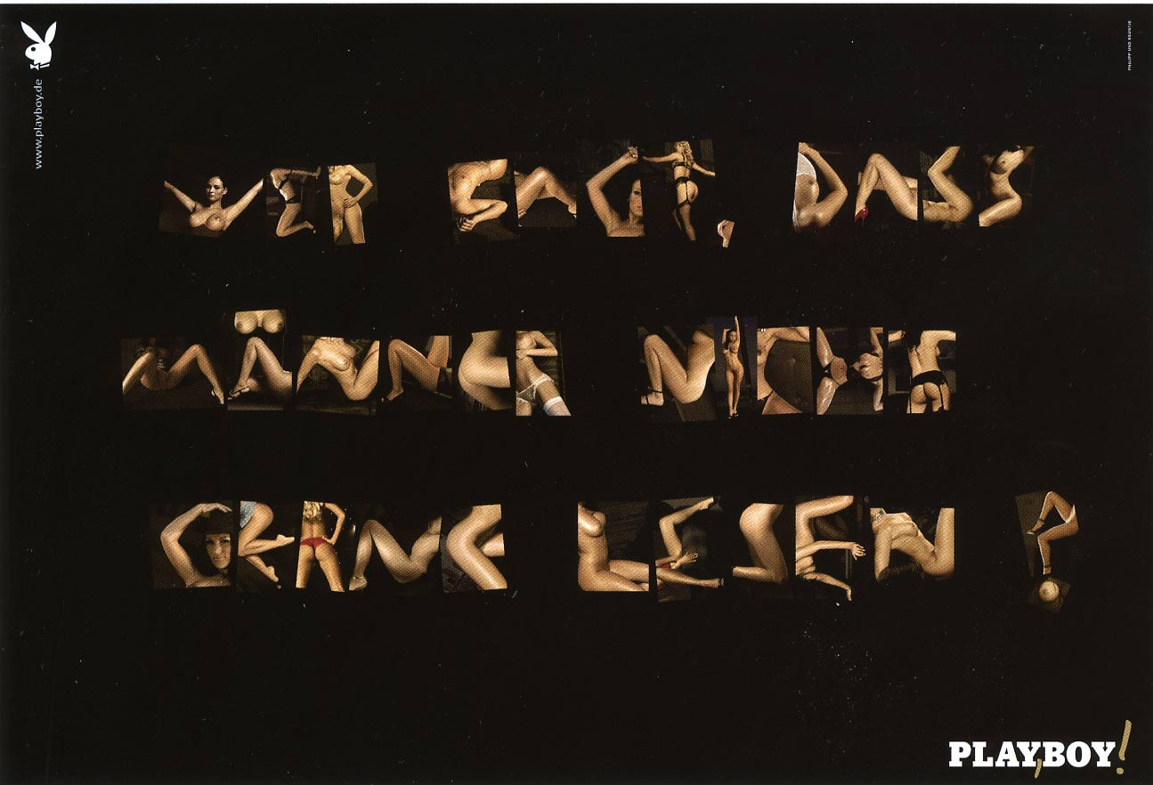 Tradução: Quem disse que os homens não gostam de ler? Meus trechos favoritos são os seios falsos com trema em “Männer” e o seio solitário servindo como ponto de interrogação. O anúncio aborda uma questão antiga: na verdade, a manchete deveria ser “Quem disse que os homens não leem a Playboy?”